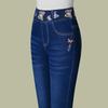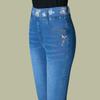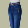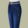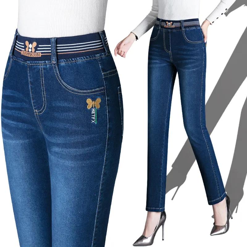 Women's Spring and Fall High-waisted Long Jeans Simple Commuter Elastic Straight-Leg Pants