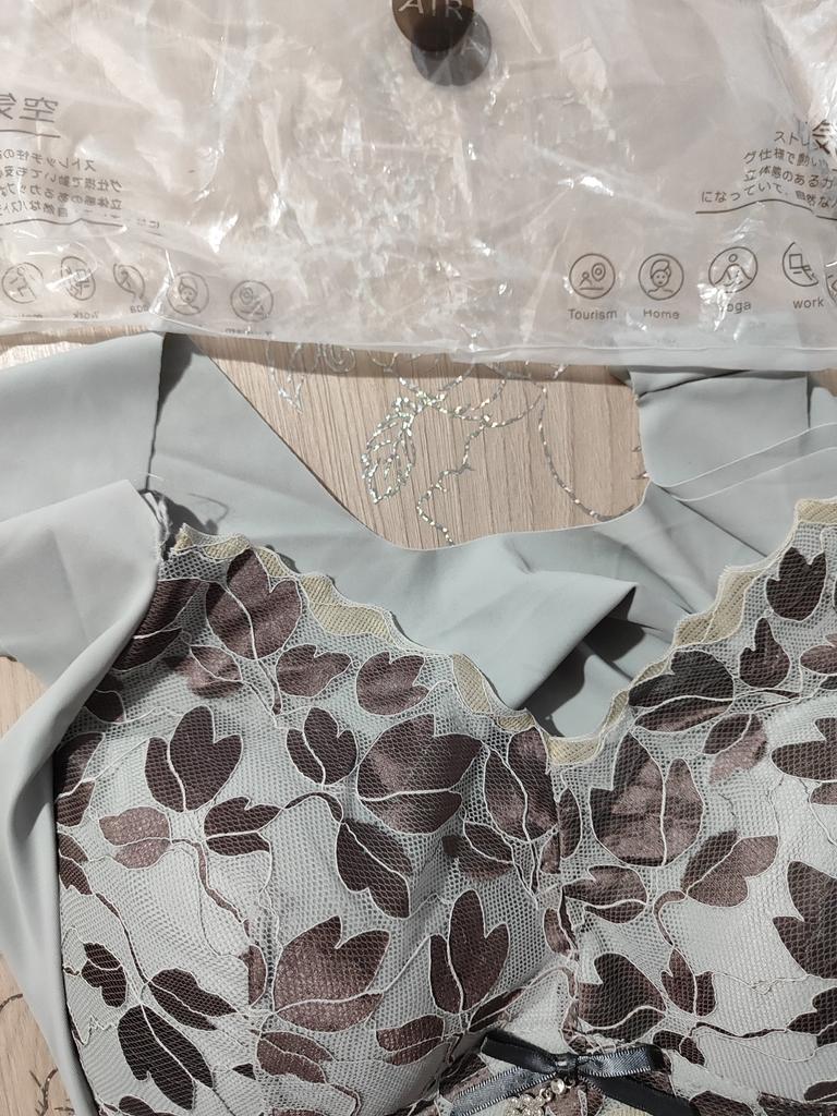 The size didn't fit at all. I'll give it to someone. You need to take 2 sizes bigger. But otherwise, it's very beautiful. They kindly put in a heart, a thank-you note, and a brooch as a gift.