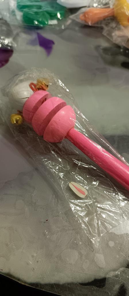 Baby Rattle Colorful Rainbow Hand Held Bell Stick Wooden Percussion Musical Toy