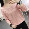 Women's Knitwear Hollow Long Sleeve Bottoming Shirt Spring and Autumn V-neck Thin Knitted Pullover Outfit Korean Style Sweaters