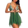 Ladies Sexy Multi-Erotic Pajamas Lace Lace Solid Color Mesh V-Neck Nightdress