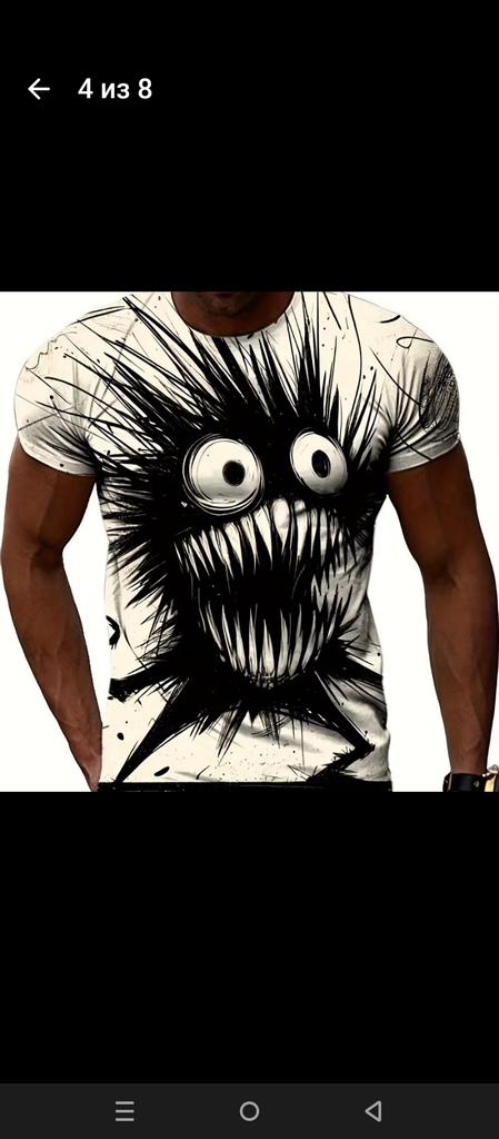 Men's Monster Graphic Print Short Sleeve Crew Neck Tee, Men's Clothing For Summer Soft Slight Stretch Polyester Blend Fabric