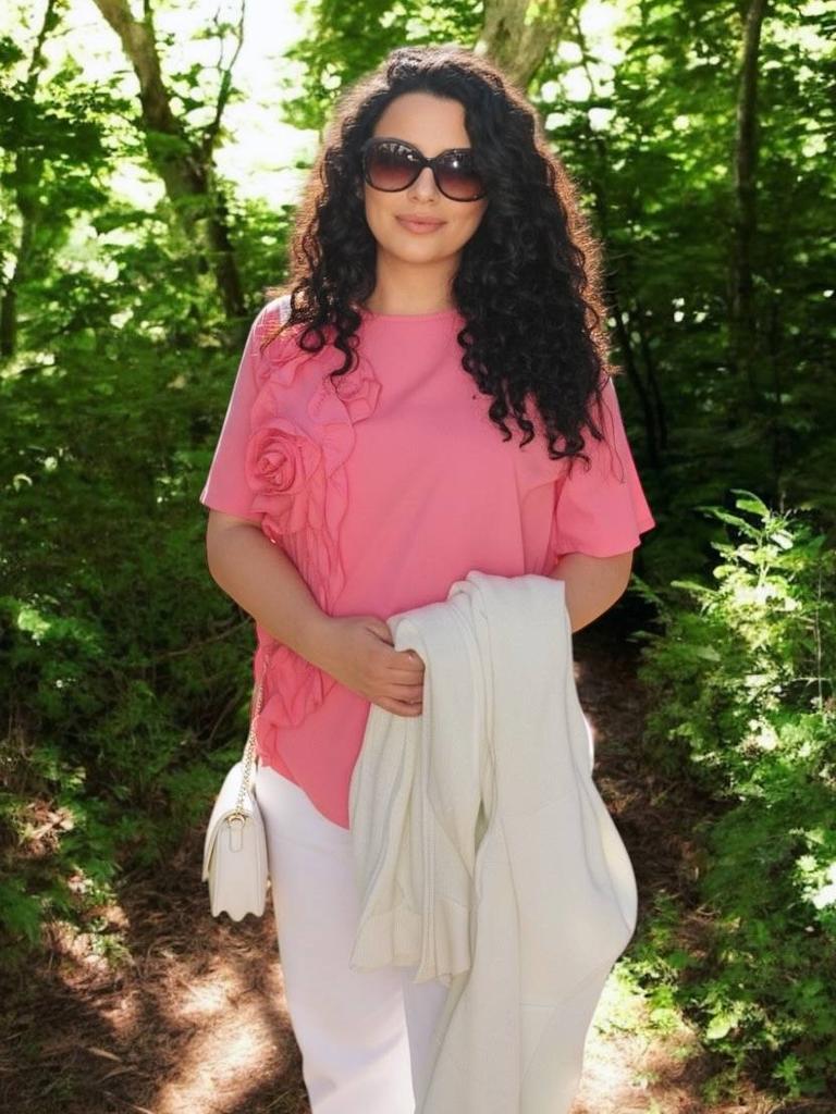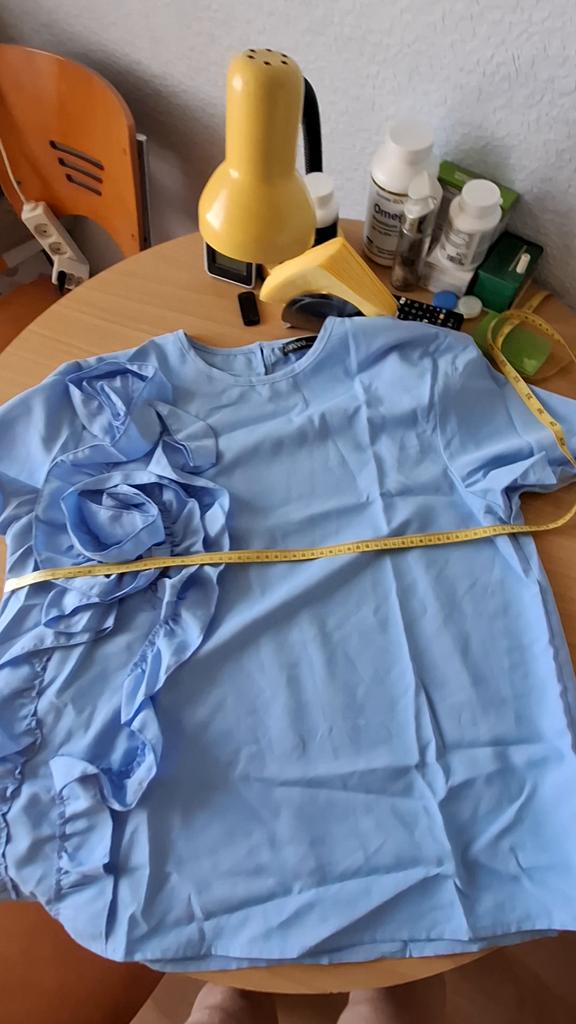 The blouse is very pretty, but I don't like how the ruffles are sewn - with the seam on the outside.. Measurements are all in the photo.