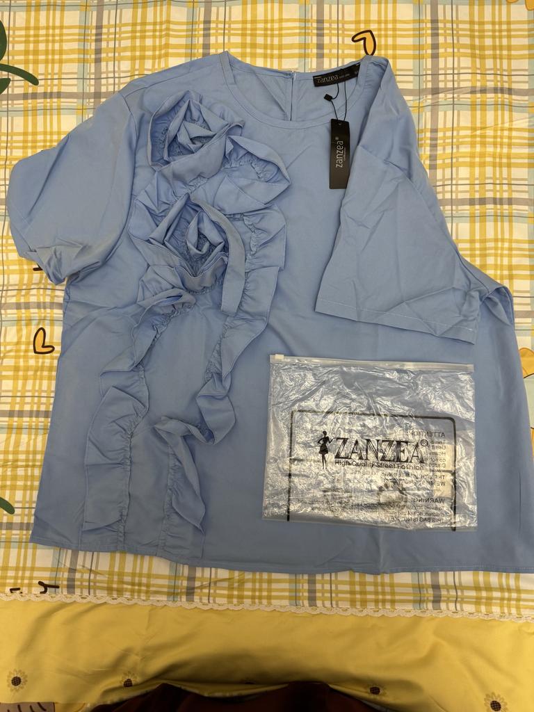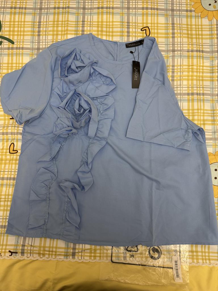 The blouse is cute, not fitted at the waist, straight cut. Can be worn with a thin belt to emphasize the waist. Looks good with a thin pearl belt. For a bust of 90, it's okay. But I think it's expensive. The fabric is very simple, like cheap cotton. And the sleeve greatly simplifies the style.