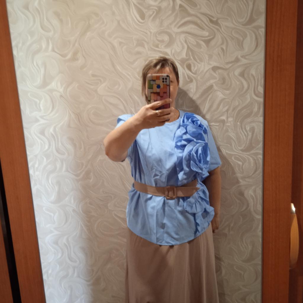 The blouse is not bad, in the chest 114 - loose, hips 124 - a bit tight. Overall it's ok, will do in the summer.