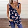 Women's Top Summer Two Tone Flower Printed Casual Plus Size Sleeveless Zipper V-neck Top Tank Top