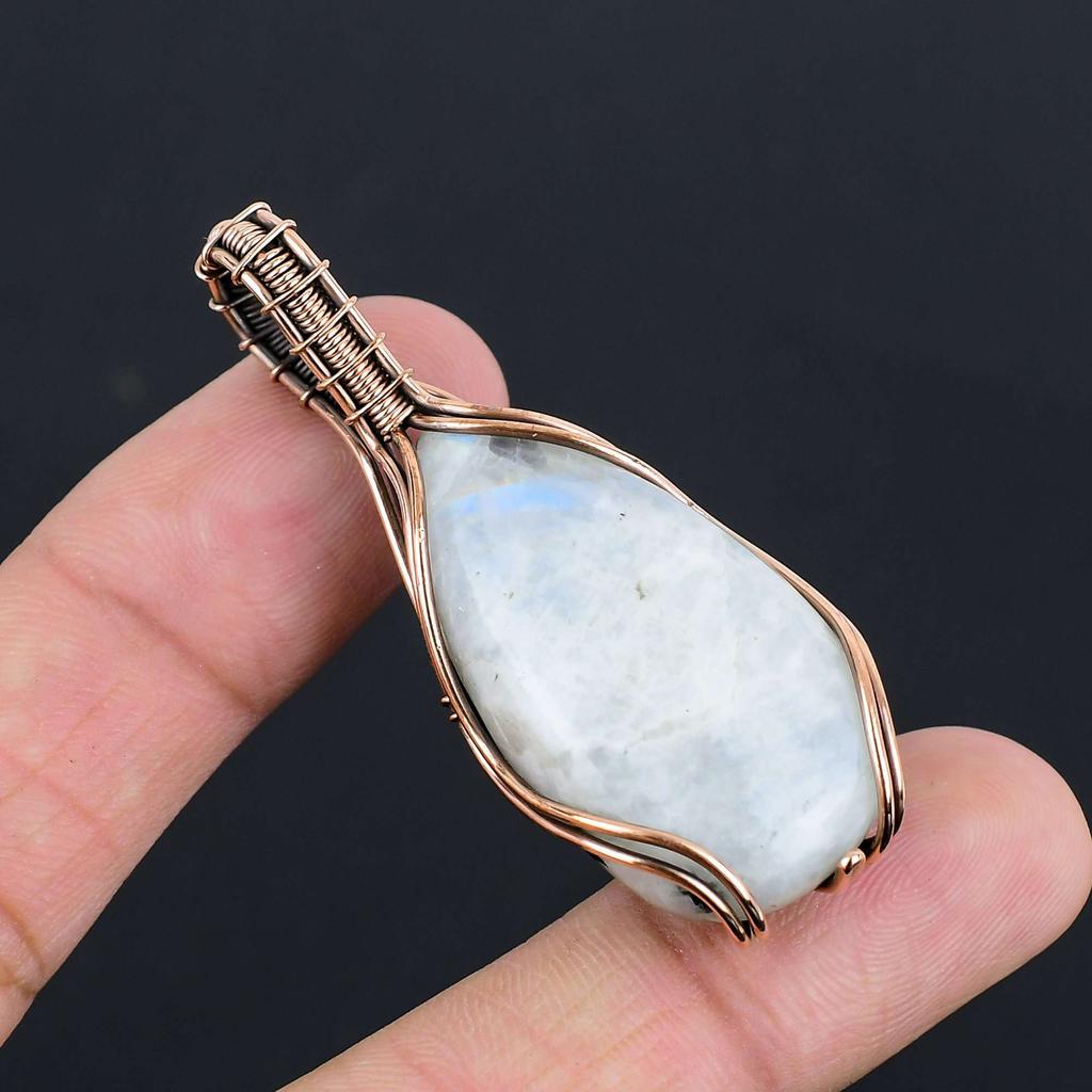 Natural Rainbow Moonstone Gemstone Copper Pendant| Oxidized Wire Wrapped| Necklace Pendant| Handmade Copper Pendant Jewelry For Gift