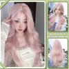 WTB Pink Long Curly Hair Synthetic Wig Female Full Head Lolita Eight Bangs Big Wave Girl Pink Natural Wig Hair Cover