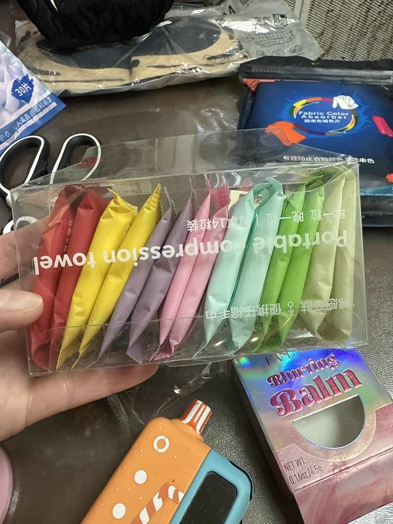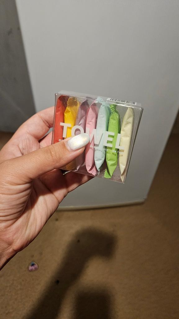 The wipes are small, but made of stretch cotton. Pressed, they soak in any water. They can be washed and reused. The set of seven wipes is convenient for travel, at work, etc.