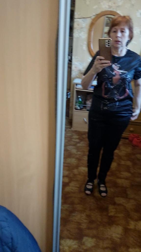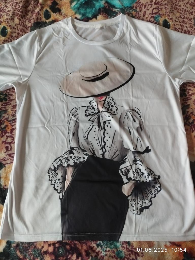 Beautiful t-shirt, the print is clear, noticeable. The fabric is 100 percent synthetic.
