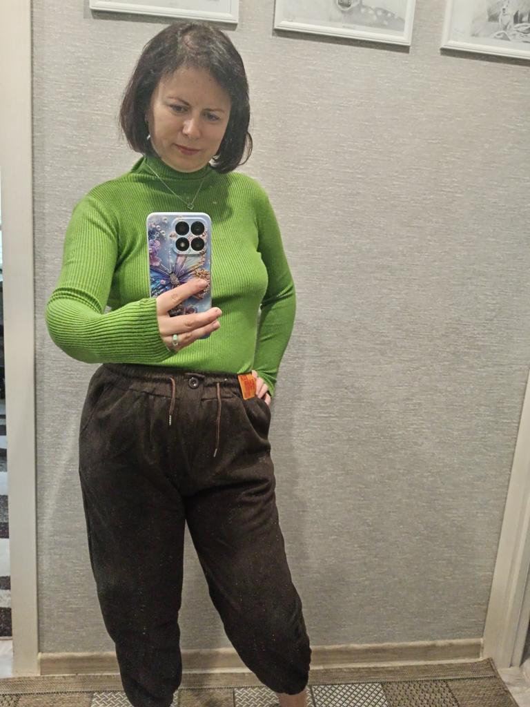 The trousers are normal in volume, but cropped in length, for a height of 165 cm the trousers are 2 fingers above the ankle. The color is nice, the fleece is warm and pleasant to the touch, but threads stick out along the seams. Update: Okay, I'm raising the rating because the pants are not bad, even though they are short. Quite comfortable, warm and pleasant. If worn with high warm socks to cover the ankles, the legs don't freeze.