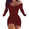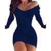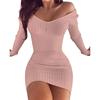 Autumn and Winter Women's V Neck Long Sleeves Slim Thin Hip Dress Warm Sweater