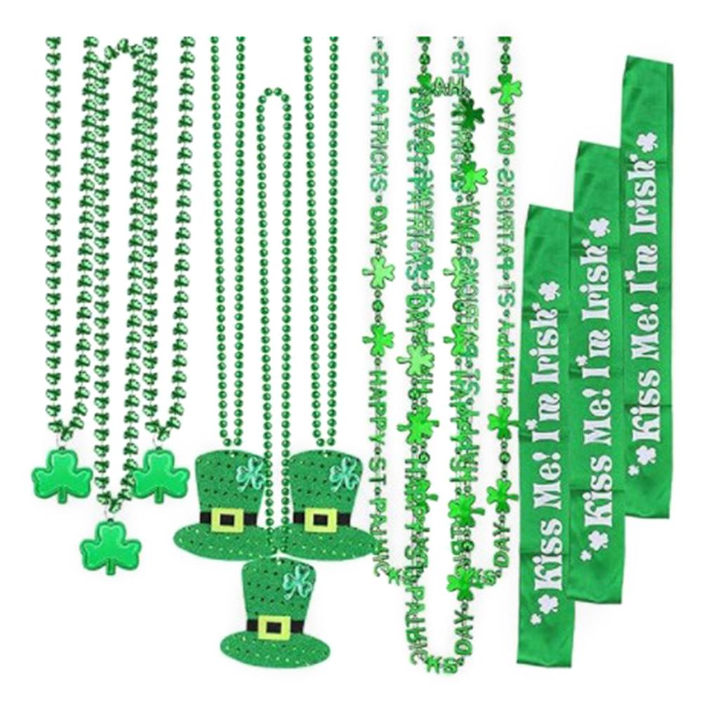 12x St. Patrick's Day Accessories Set Green Shamrock Beads Necklaces Irish Party Shoulder Straps for Costume Accessories