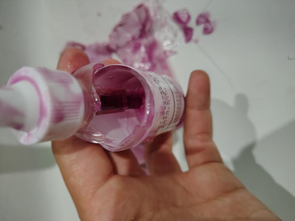 The product is somehow spoiled, it foams and is purple in color, with a jelly-like consistency! In the photo it is pink, but in reality it has a strange purple hue!