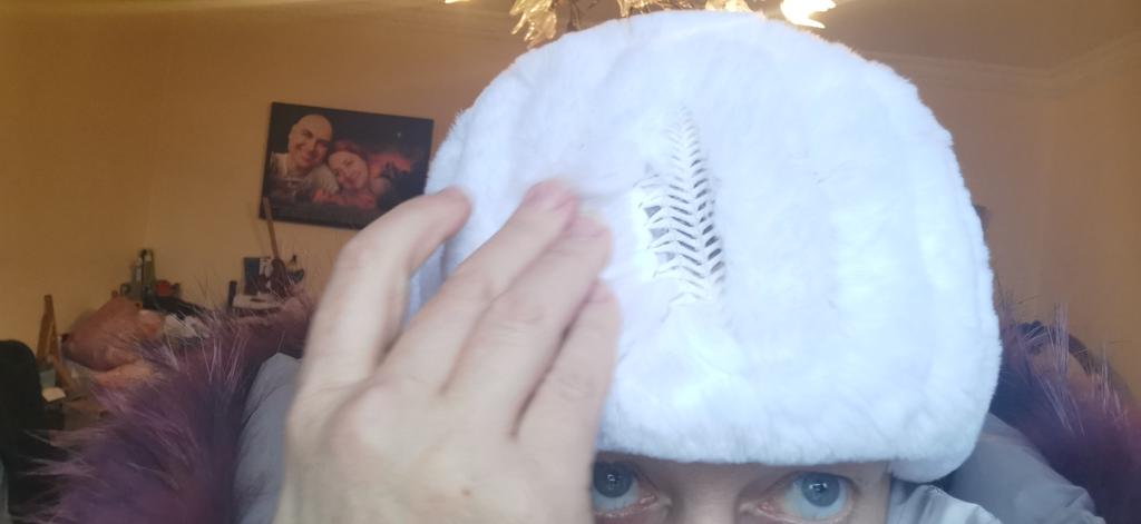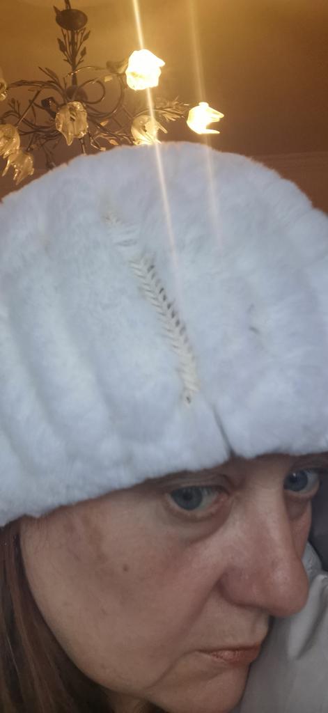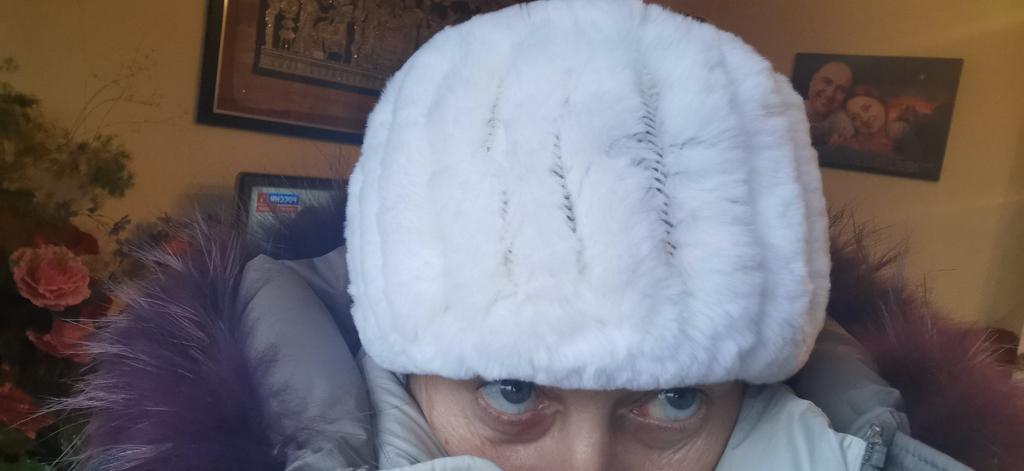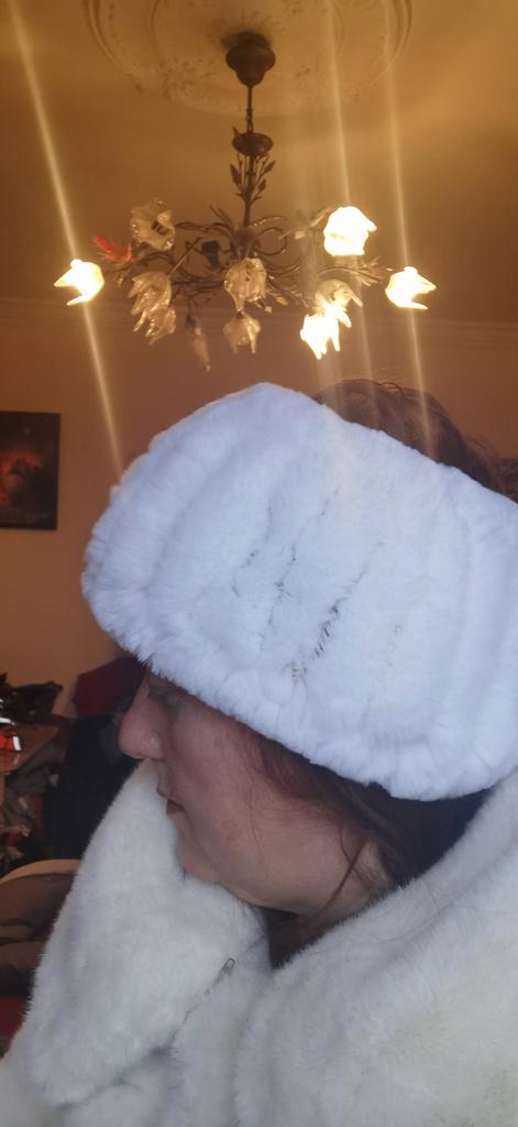 Natural fur, soft, fluffy, cute rabbit. Looks great both on the neck and on the head. I recommend.
