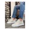 Ba0152 Lace-up High Sole Cream Linen Men's Shoes