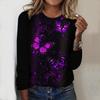 Tops For Women Wheat Ear Butterfly Print Round Neck Long Sleeve T-shirt Fall Casual Slim Pullover Women's Long Sleeve Top