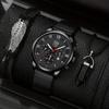 3pcs/set, 1pc Men's Luxury Business Stainless Steel Mesh Band Quartz Watch & 1pc Bracelet & 1pc Necklace with