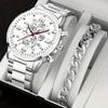 2pcs/set, Fashion Men's Calendar Quartz Watch, Casual Men's Stainless Steel Wrist Watch & Bracelet, Best Gifts for Him
