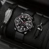 3pcs/set 1pc Fashion Men's Casual Stainless Steel Mesh Band Quartz Watch & 1pc Bracelet & 1pc Necklace