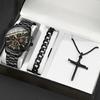3pcs/set Men's Calendar Watch, Fashion Sports Stainless Steel Quartz Watches & Men's Bracelet & Men's Necklace