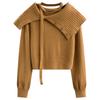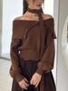 Off Shoulder Sexy Knitted Sweater Women French Lapels Elegant Warm Sweater Tops Autumn Winter Fashion Loose Patchwork Pullover New