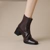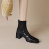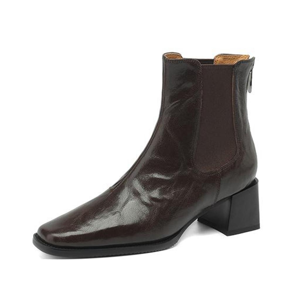 Krazing Pot Sheep Skin Square Toe Winter Med Heels Chelsea Boots Women Zipper Retro Fashion Leisure Ankle Boots