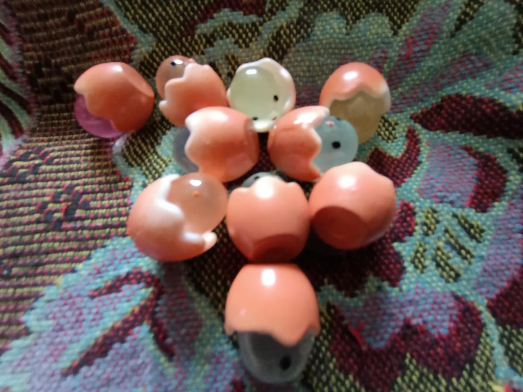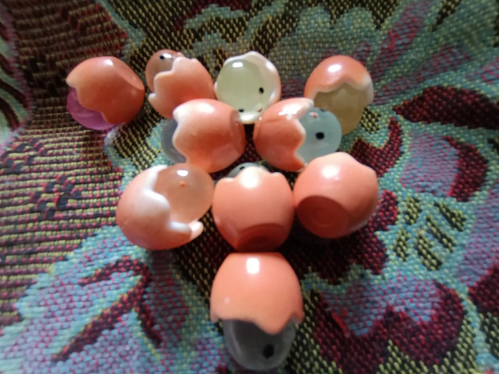 Funny, not badly made/ eyes not on the ear, beak not on the forehead, chicks of different colors, glow, exactly 10 pieces