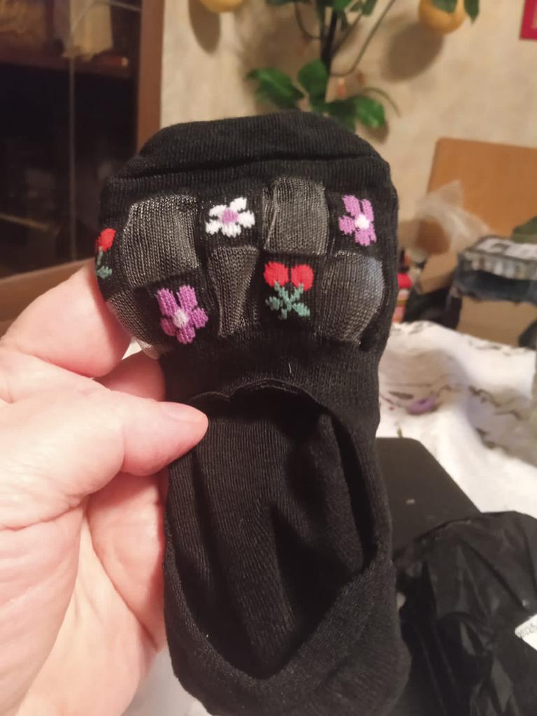 Very pretty footies and pleasant to the foot. Toe and heel cotton👍 I recommend the product!