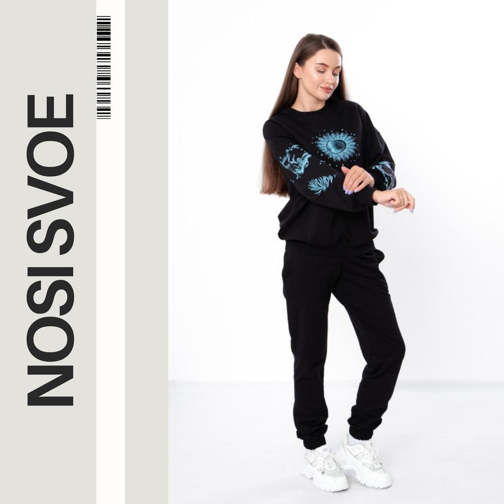 The stylish women's sports suit is an ideal choice for an active lifestyle. The set includes a comfortable sweatshirt and pants made from high-quality breathable and elastic materials. The sweatshirt with a trendy design provides warmth and comfort, while the pants with an elastic waistband are perfect for any workout. The materials quickly wick moisture away and retain their shape after washing, making the suit practical and durable.