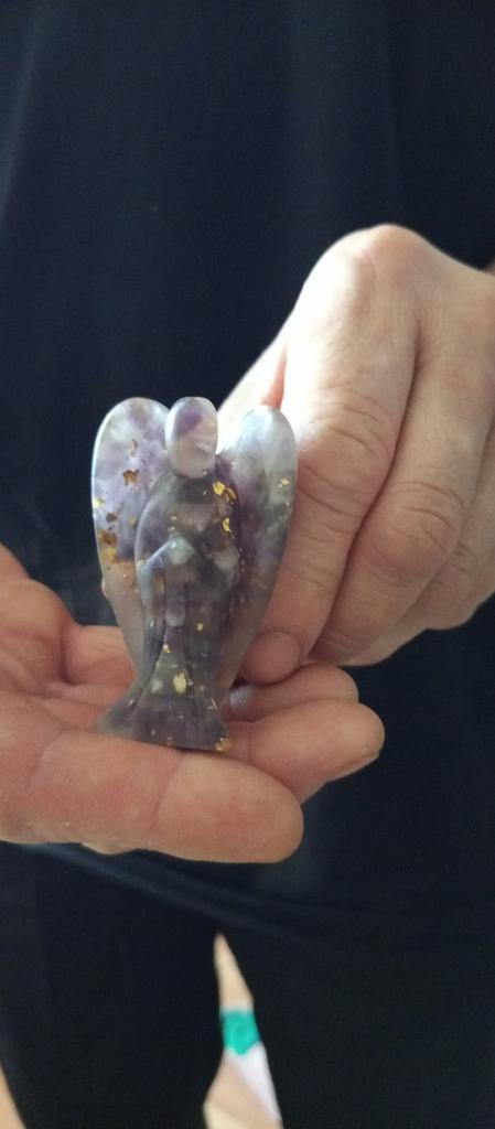 Natural Stone Angel Figurine Positive Healing Energy Hand-carved Colorful Faux Crystal Winged Guardian Angel Statue