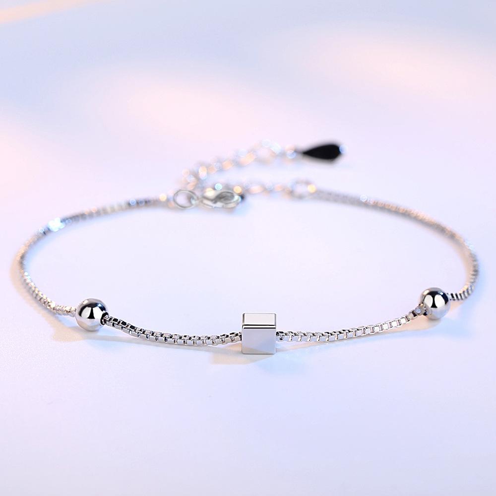 Square Sugar Bracelet Box Chain Square Japanese and Korean Handmade Bracelet Girl's Five-Pointed Star Cube Silver-Plated Bracelet