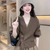 Autumn Knitted Cardigan Jacket Women's Long Sleeved Top Design Niche Loose V-neck Lazy Sweater Solid Knitted Outerwear
