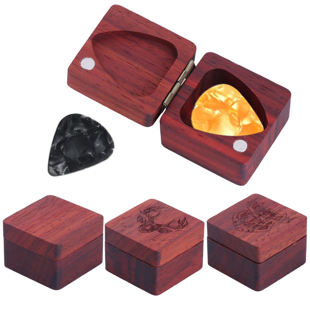 Wooden Guitar Pick Storage Box Container Portable Guitar Pick Box Holder Collector Gift for Guitarist, Musician