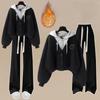 Spring and Autumn and Winter Fashion Suit Women's Fake Two-piece Hooded Sweater Sportswear Trousers Two-piece Suit