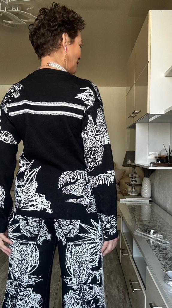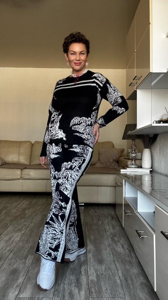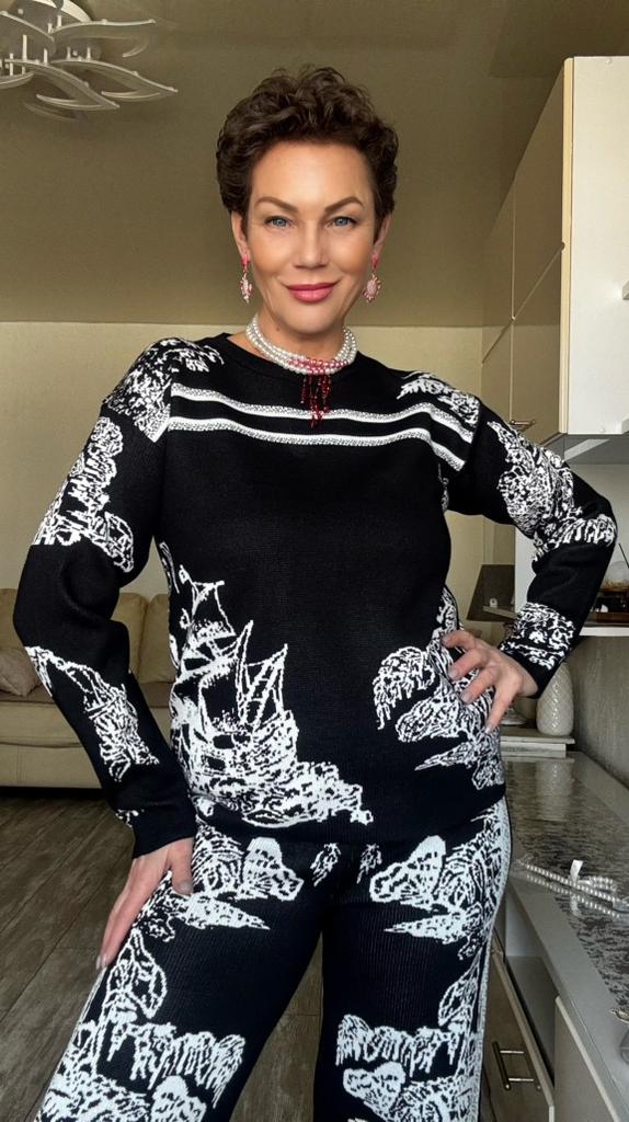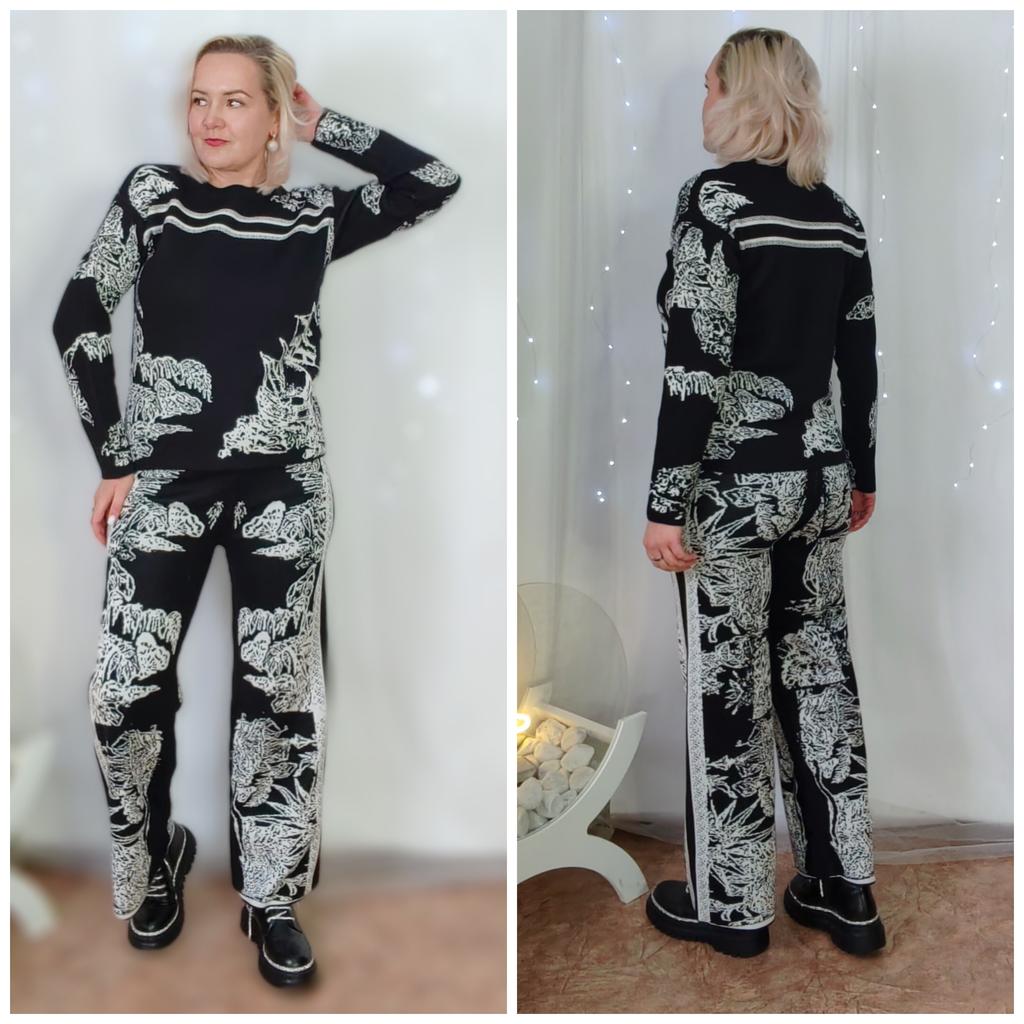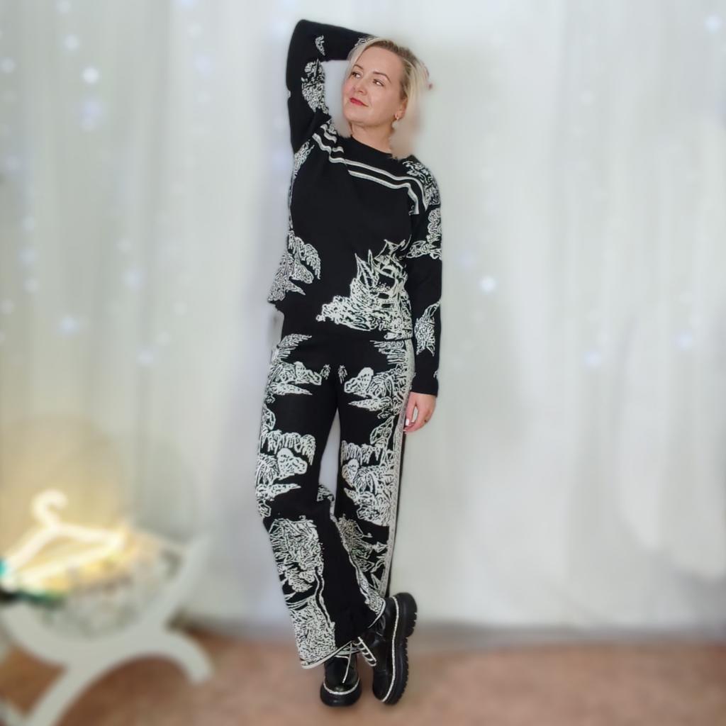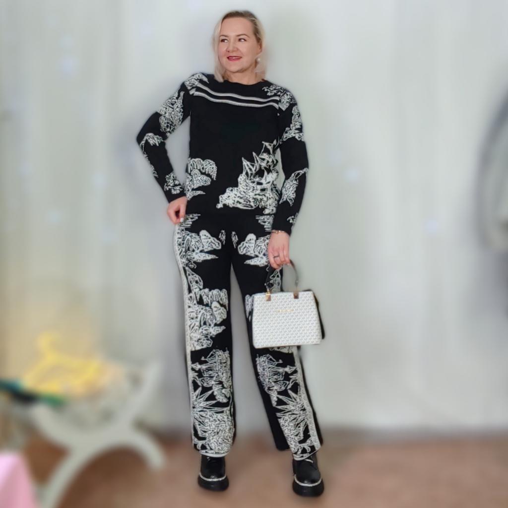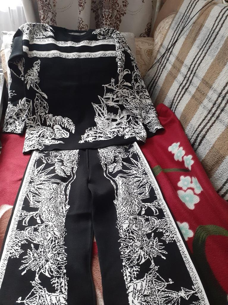 Women Autumn Winter Vintage Sailing Jungle Jacquard Knitted Two Piece Set Wide Leg Pant Suits Thicken Warm Sweater Tracksuit