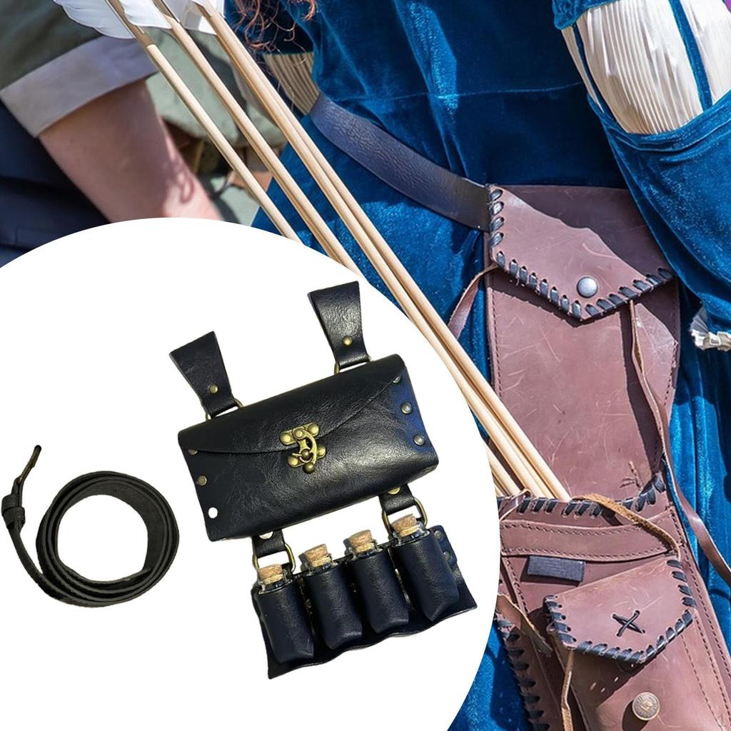 - Cool Design - This Medieval Waist Bag features a vintage style side bag with an external bottle storage compartment, capable of holding up to 4 potion bottles. It's suitable for those who love the ancient and mystical vibes.