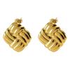 Stainless Steel Earrings Electroplated Titanium Steel Retro Embossed Earrings Square Bread Hollow Earrings