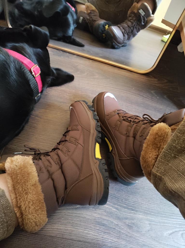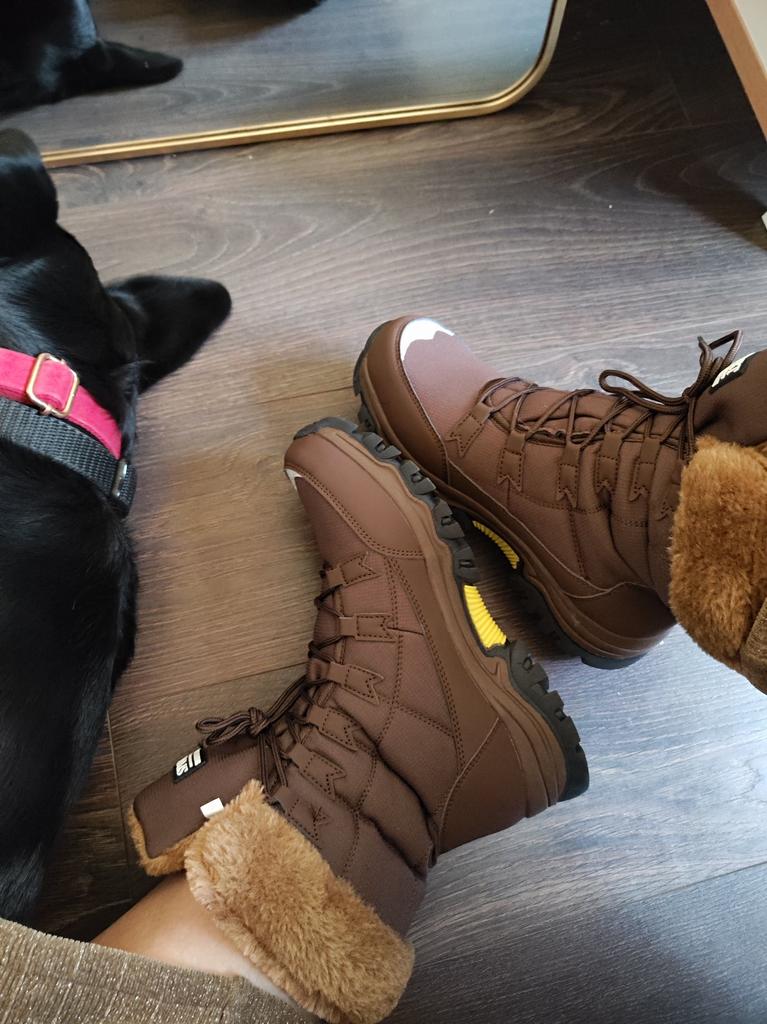 English: I absolutely love these winter snow boots! 🥾❄️ First of all, the quality is outstanding! The microfiber upper material feels tough and durable, yet lightweight enough for long walks in the snow. The plush lining inside is incredibly soft and keeps my feet super warm, even on the coldest days 🧦🔥. The boots are designed with great attention to detail, from the secure lace-up system to the reinforced rubber soles that offer excellent traction on slippery surfaces ⛷️. They are perfect for hiking, outdoor adventures, or just casual winter wear. The stylish brown color with the fluffy fur lining adds a nice touch of elegance while still being practical. I’m wearing size 42, and they fit perfectly, with just enough room for thick winter socks. I also love how the boots are so easy to clean, which is a huge bonus after trekking through snow and mud! 🌧️ The delivery was fast and smooth, and everything arrived in perfect condition. Overall, these boots are a great investment for anyone who needs warm, comfortable, and durable winter footwear. Highly recommended! 🌟 أنا أعشق هذه الأحذية الشتوية الثلجية! 🥾❄️ أولاً، الجودة رائعة للغاية! الجزء العلوي المصنوع من المايكروفايبر يبدو متينًا وقويًا ولكنه خفيف الوزن، مما يجعله مثاليًا للمشي لمسافات طويلة في الثلج. البطانة المخملية من الداخل ناعمة بشكل لا يصدق وتحافظ على دفء قدمي حتى في أبرد الأيام 🧦🔥. تم تصميم الأحذية بعناية كبيرة، بدءًا من نظام الرباط الآمن وحتى النعال المطاطية المعززة التي توفر قبضة ممتازة على الأسطح الزلقة ⛷️. إنها مثالية للمشي لمسافات طويلة، والمغامرات الخارجية، أو حتى للاستخدام اليومي في الشتاء. اللون البني الأنيق مع البطانة الفروية يمنح الأحذية لمسة من الأناقة مع الحفاظ على العملية. أنا أرتدي مقاس 42، ويعتبر المقاس مثاليًا، حيث يترك مساحة كافية لارتداء جوارب شتوية سميكة. أحب أيضًا مدى سهولة تنظيف هذه الأحذية، وهو أمر رائع بعد المشي في الثلج والطين! 🌧️ كان التوصيل سريعًا وسلسًا، ووصل كل شيء في حالة مثالية. بشكل عام، هذه الأحذية استثمار رائع لأي شخص يحتاج إلى أحذية شتوية دافئة ومريحة ومتينة. أوصي بها بشدة! 🌟