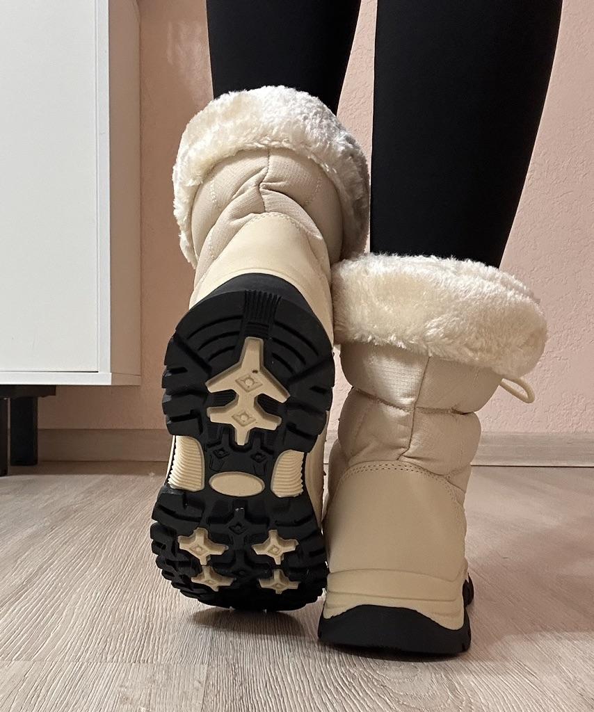 Good day! Boots were ordered according to the advertising size 42 - 26.5. And in reality, the size, length of the insole ... turned out to be too large 27.7. There are no complaints about the quality, warm, light, beautiful color. But even with a warm sock, they are too big and it is very uncomfortable to walk. The length of the sole is as much as 30 cm. Sorry.