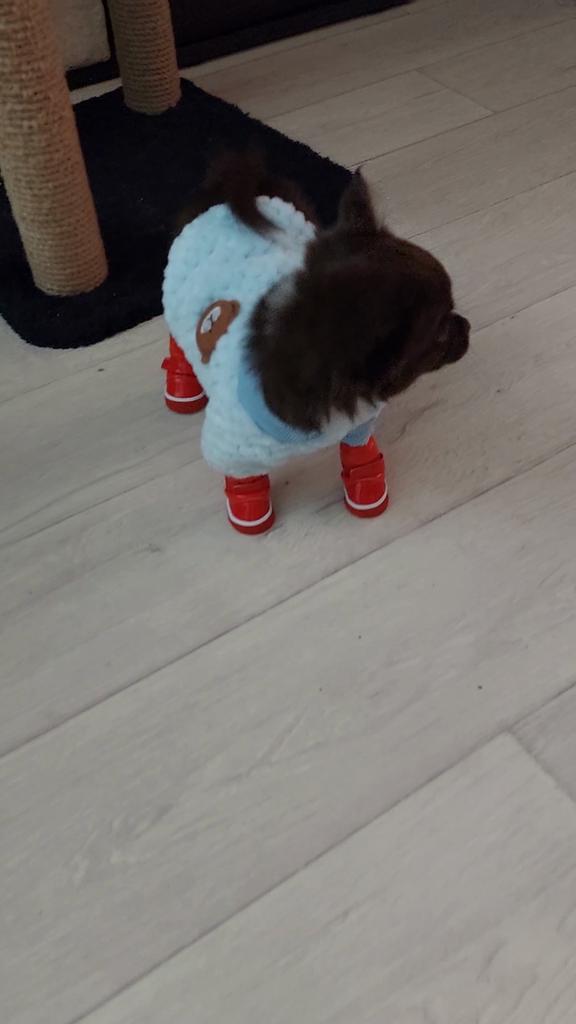 The fabric is very pleasant to the touch, not very warm. More suitable for spring-autumn. The size is suitable for a dog of 6-6.5 kg