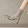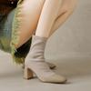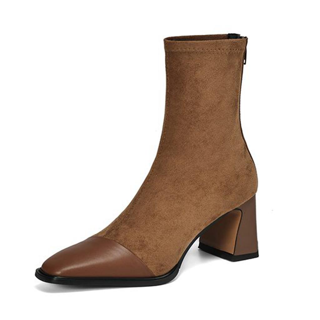 Krazing Pot Cow Skin Autumn Winter Shoes Square Toe Mixed Color Thick High Heels Zipper Chelsea Boots Women Stretch Ankle Boots