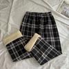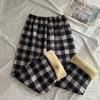 Winter Thick Plaid Pants Women Korean Fashion Warm Loose Wide Leg Trousers Student Y2K Causal High Waist Pants Outwear