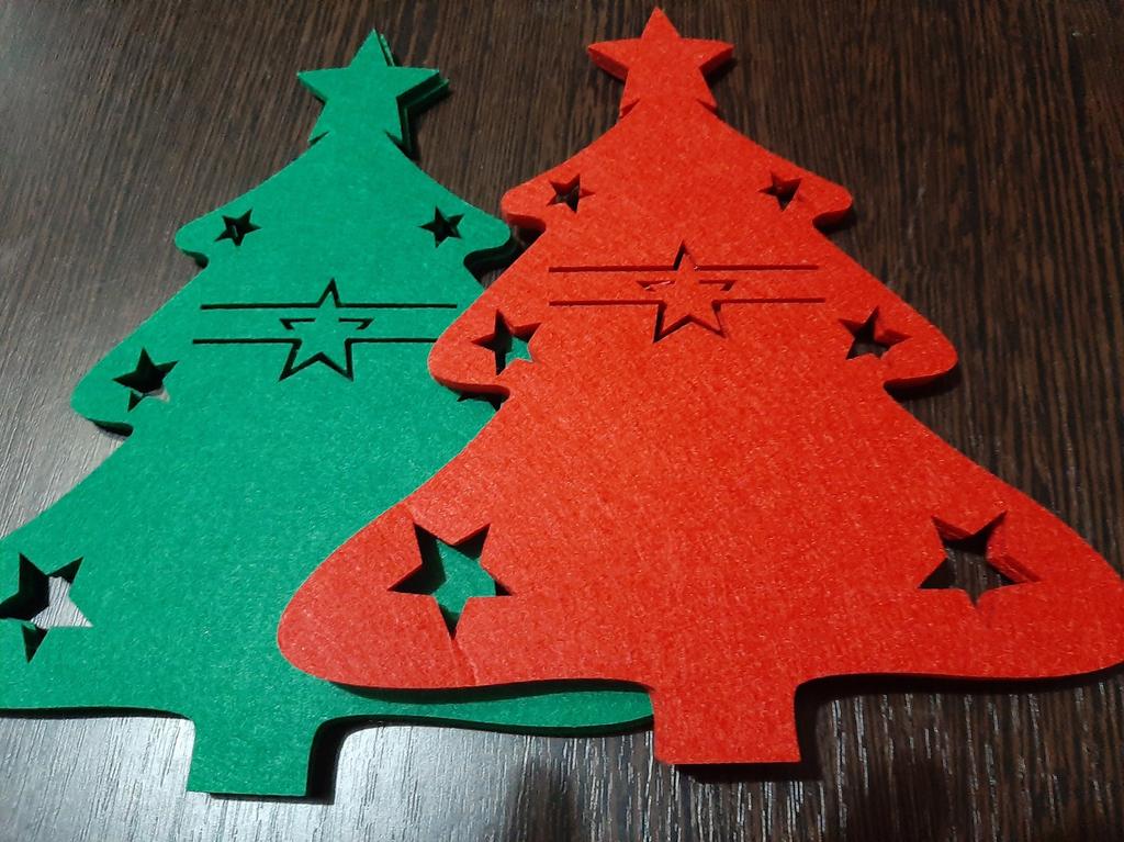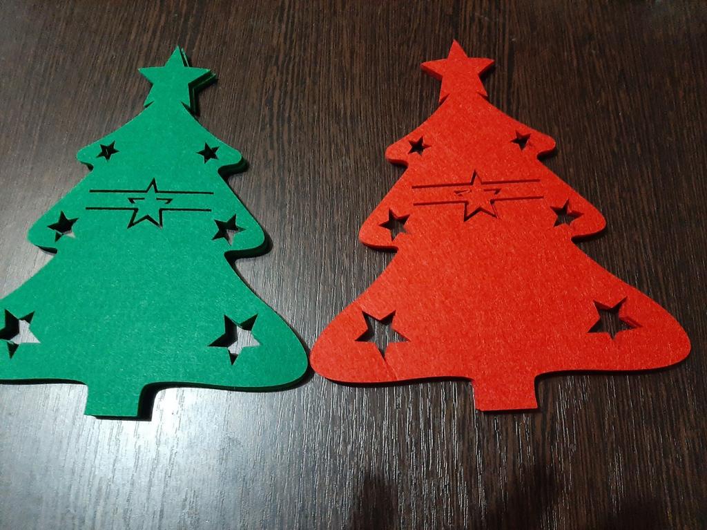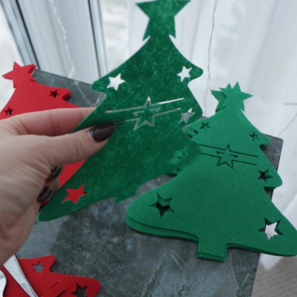 Very cute New Year's decor made of felt 🎄👍 We will decorate the festive table. I took two sets: green and red, 12 pieces in each. The Christmas trees are cut on a machine, perfect precision 💫