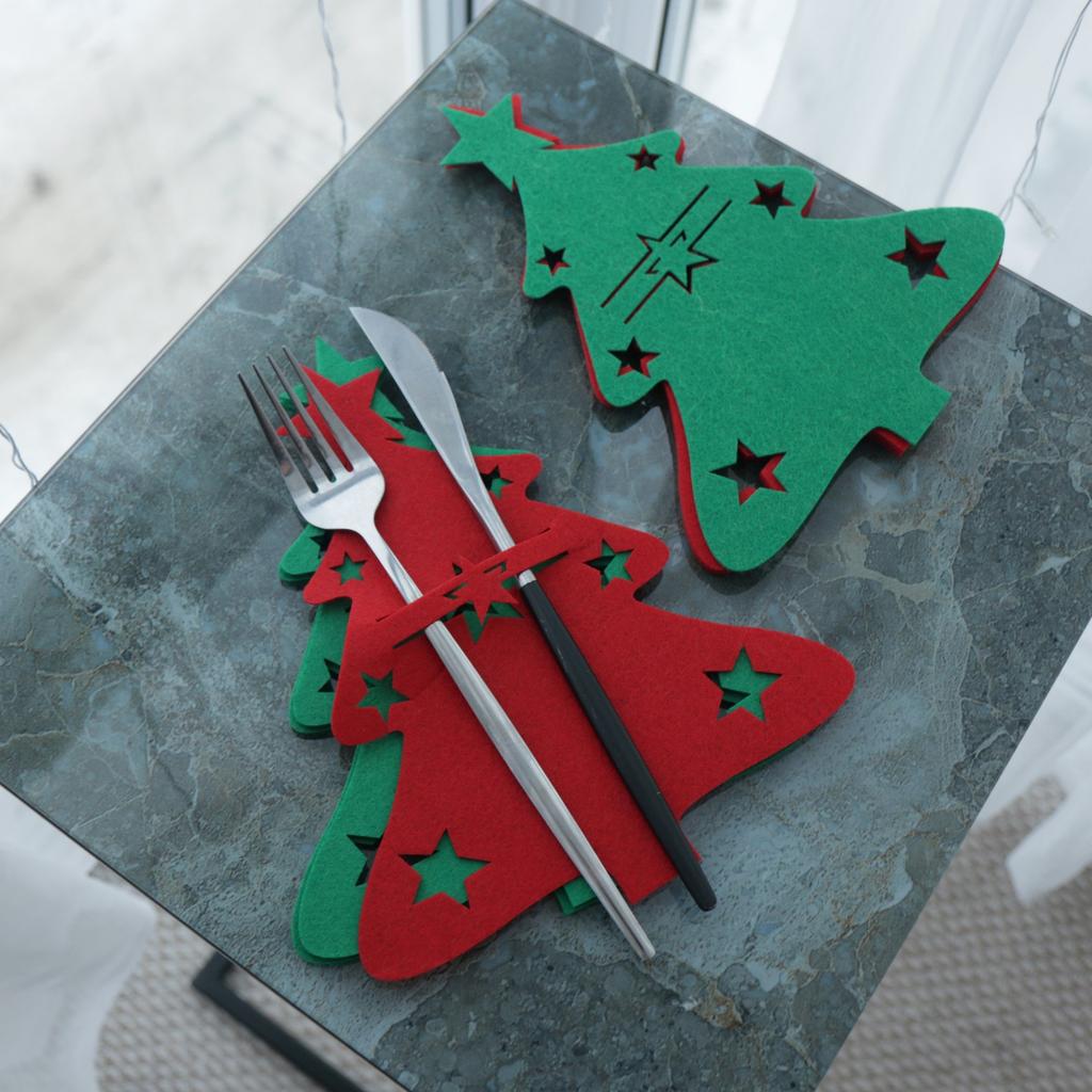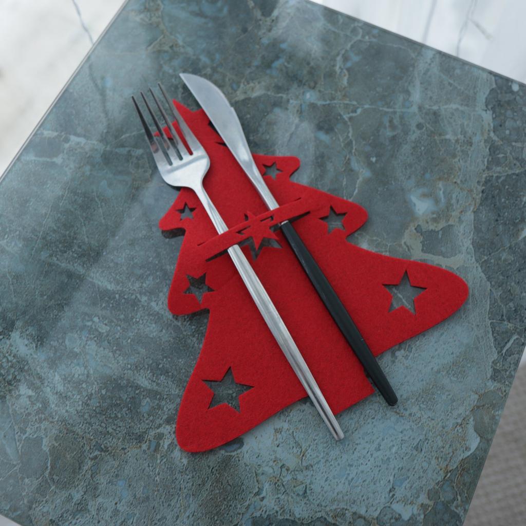 Christmas trees for cutlery for the New Year's table made of non-woven material, 6 pcs of each color.