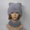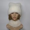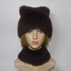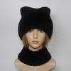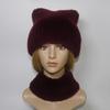 Winter Girls Fashion Fluffy Real Rex Rabbit Fur Hat Scarf Sets Warm Real Rex Rabbit Fur Cat's Ear Hats Women Good Quality Real Fur Cap Scarves