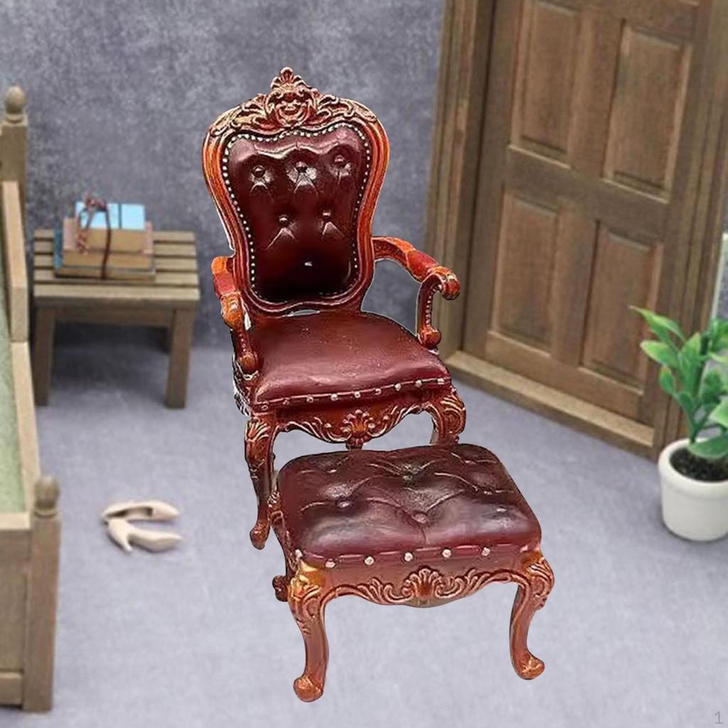 2 Pieces 1/12 Dollhouse Chair and Foot Stool, Simulation Accessories Toy, Doll