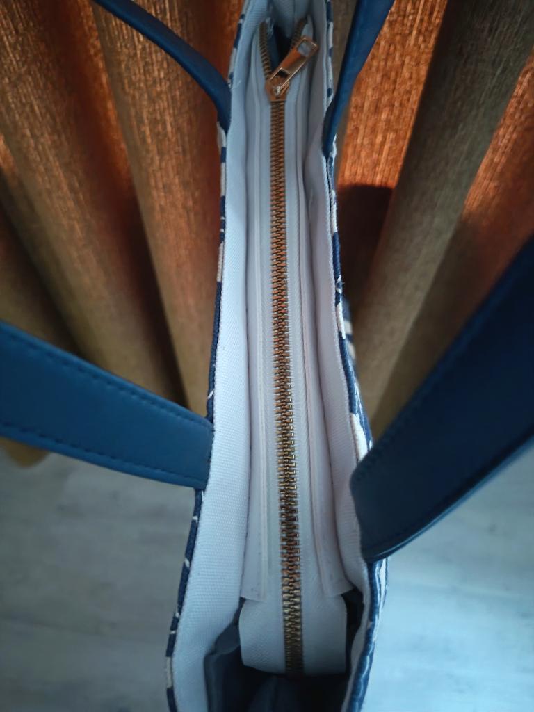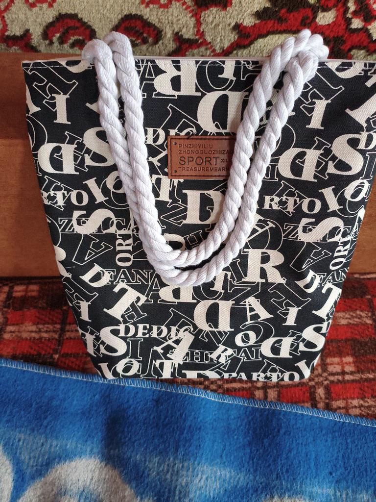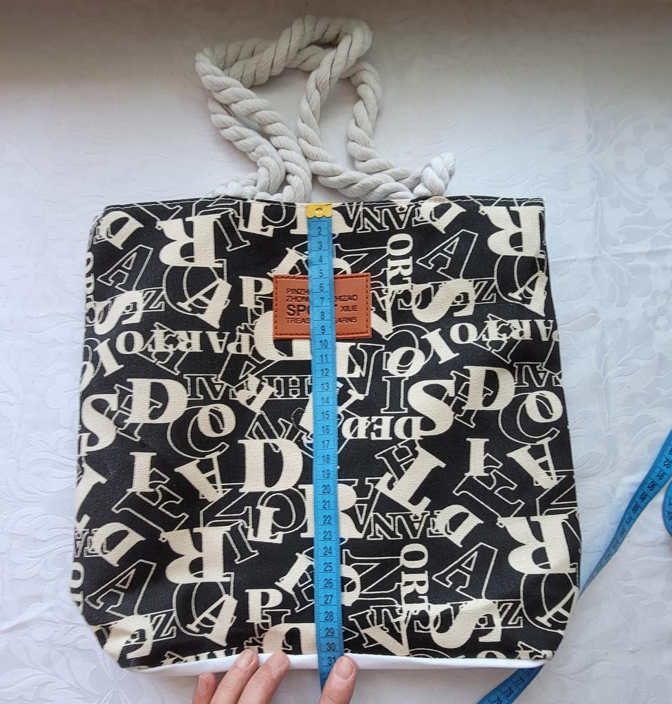 Size medium, good. Inside - a small zippered pocket. Handles and bottom - white, letters on the bag - beige (this is a small minus). But why doesn't the zipper on the bag go all the way?