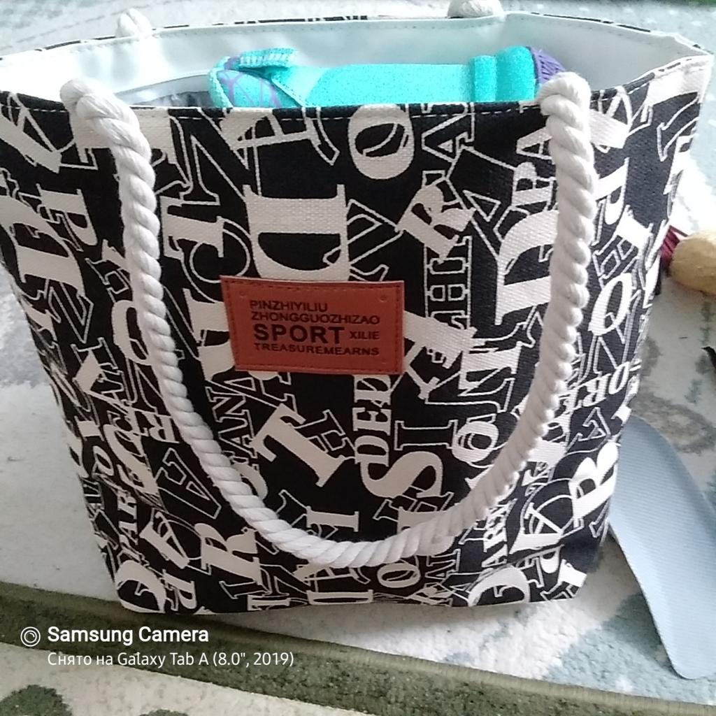 Small, but pretty, comfortable. Was coming from the post office, went into the store, unpacked the package with the handbag, it fit - a liter tetrapak of kefir, a bunch of bananas (7 pieces), a jar of sour cream, a sliced loaf, but the bag didn't close, the loaf was sticking out. It will be convenient in the summer, everything suited me, both the size, although it could be a little bigger, and the color, and the quality, and the handles are strong and comfortable. Thank you!!!!