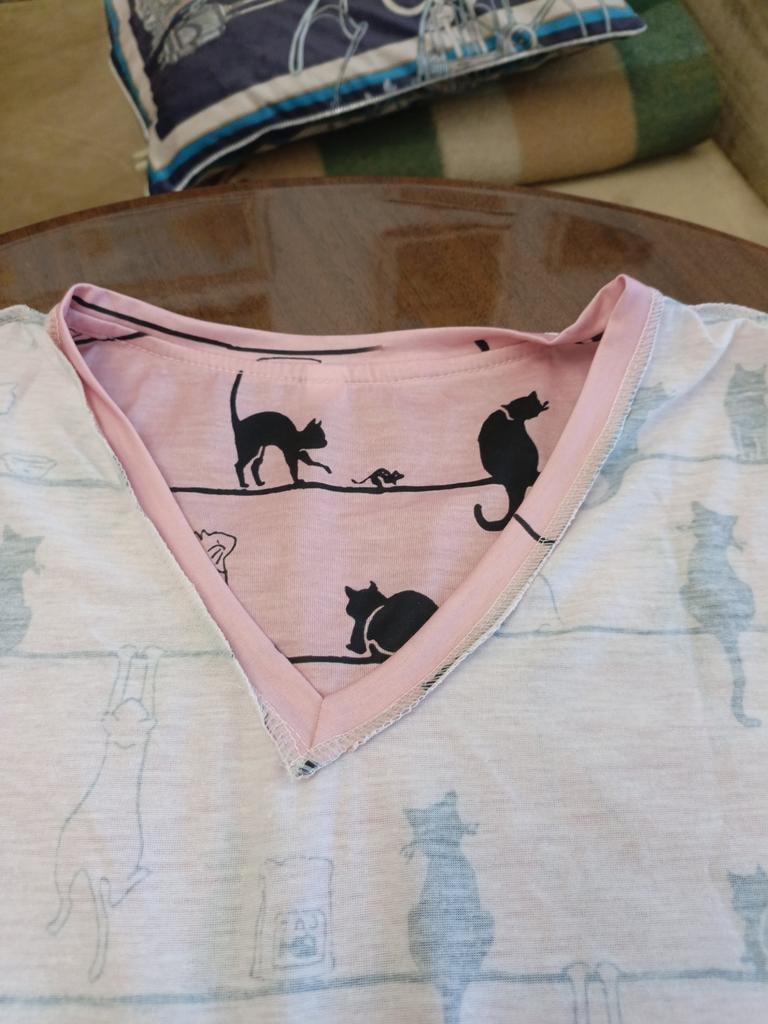 It looks better in the picture. The neckline is crooked, there is no black binding. Dissatisfied with the purchase.